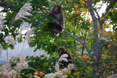 秋の頃に出会った猿の群れの2匹です。