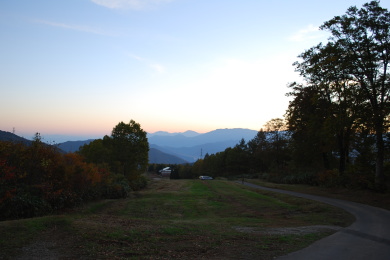 10月中旬の週末の、苗場山登山用駐車場です。 午前5時40分頃で、この状態です。 駐車場は、すぐに満車になって駐車出来ない車が 道路に停める等数多く見られました。 |